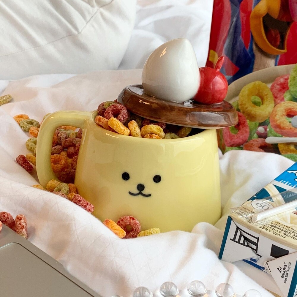 📍푸딩컵의뚜껑,체리,허니컵의 리본,귀안쪽부분은 손으로 하나하나 칠해지는 부분으로 붓터치결이 보이게되고 이는 핸드케이드색채공정의 자연스러운 현상이므로 모든제품이 다르게 나타나게되고 컬러감이 약간씩 다르게 느껴지실 수 있습니다.